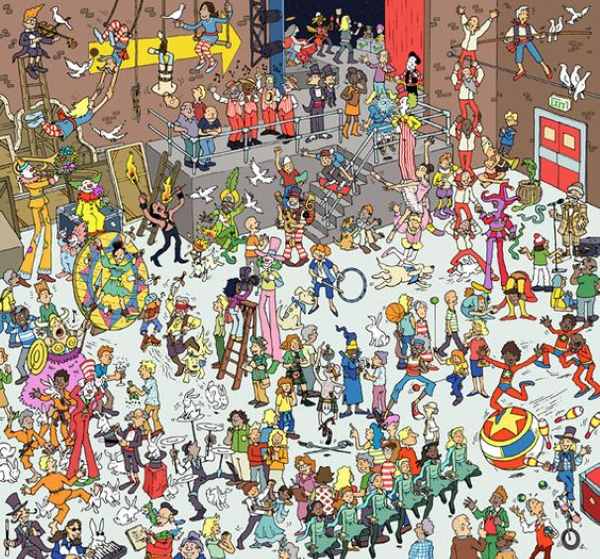 One popular seek and find puzzle is the "hidden Waldo" puzzle. In this puzzle, you are presented with a picture of a circus. In the chaotic scene, Waldo is hiding very discreetly.