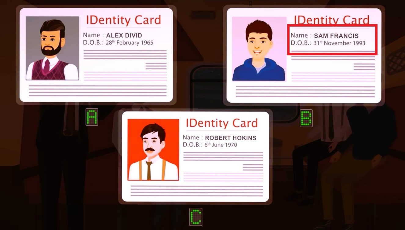 If you observe carefully, the most obvious mistake that comes to attention is that the date of birth on the ID card of Sam Francis is mentioned as 31st November, which is impossible.