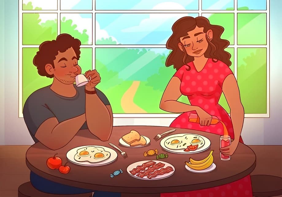 The picture shared above depicts a breakfast table scene where a couple can be seen having their breakfast.