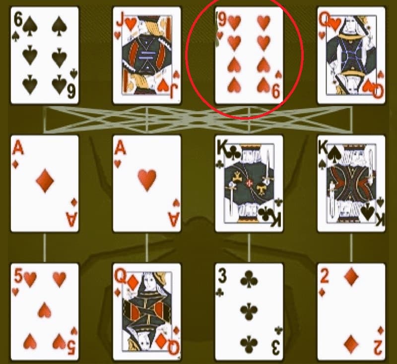 The mistake in the picture is that the 9 of Hearts card is not having 9 hearts, if you look closely it has 8 hearts.