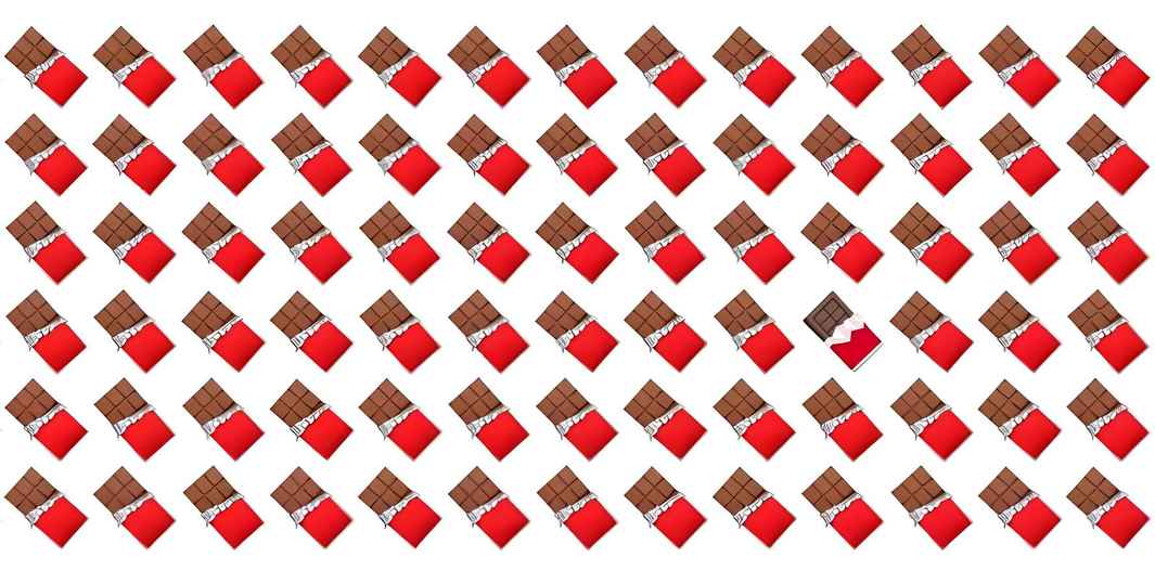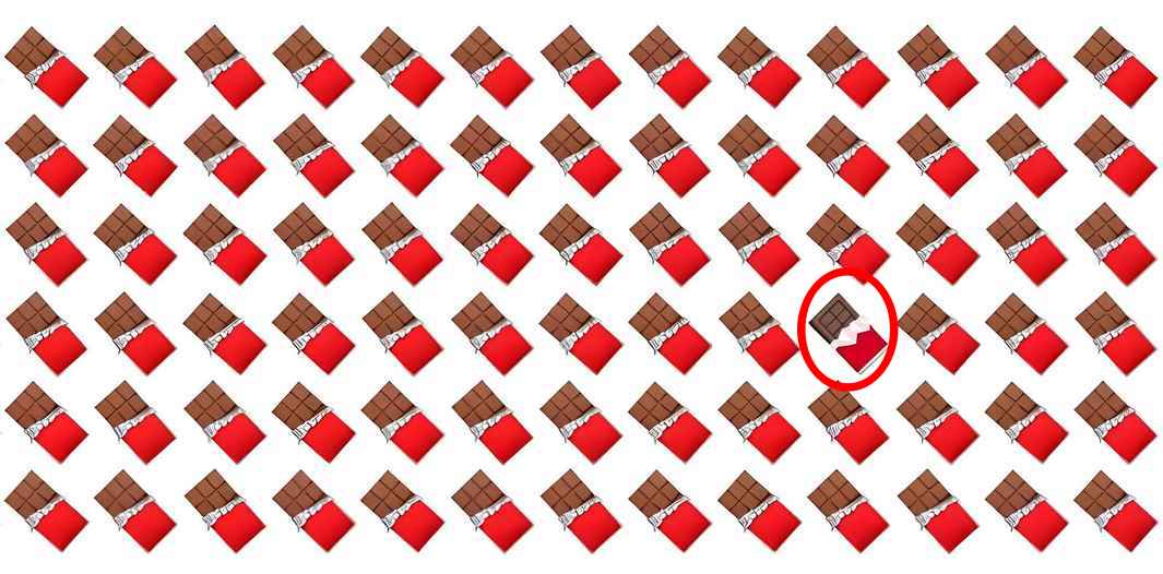 The challenge for the readers is to spot that odd chocolate bar in 4 seconds.