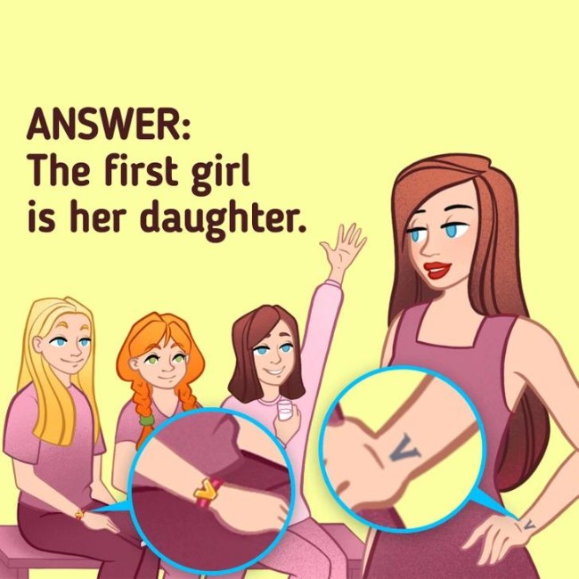 In this brain teaser picture puzzle, we asked you to find the woman’s daughter in 6 seconds. If you were unable to do so, then you can see the solution right below: