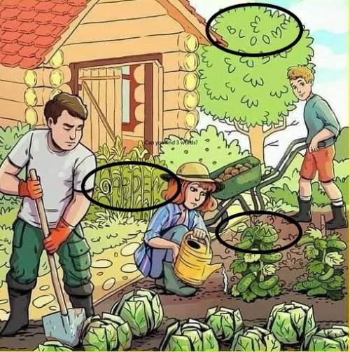 Get ready for an exciting puzzle that will put your observation skills and IQ to the test! In the image below, you'll see a lively gardening scene, and your challenge is to find three hidden words within it.