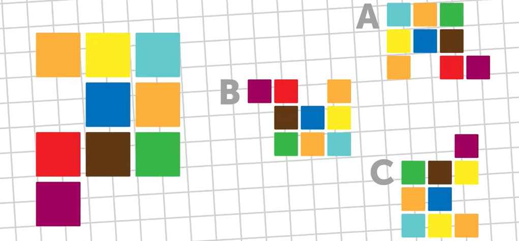Also, three similar smaller shapes, A,B, and C, can be seen.