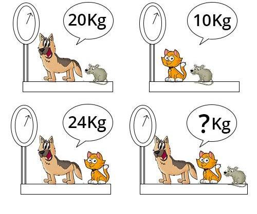 A puzzle is presented to the readers where three combinations of animals are seen, and the users are asked to find the weight of each animal as well as determine their total weight.