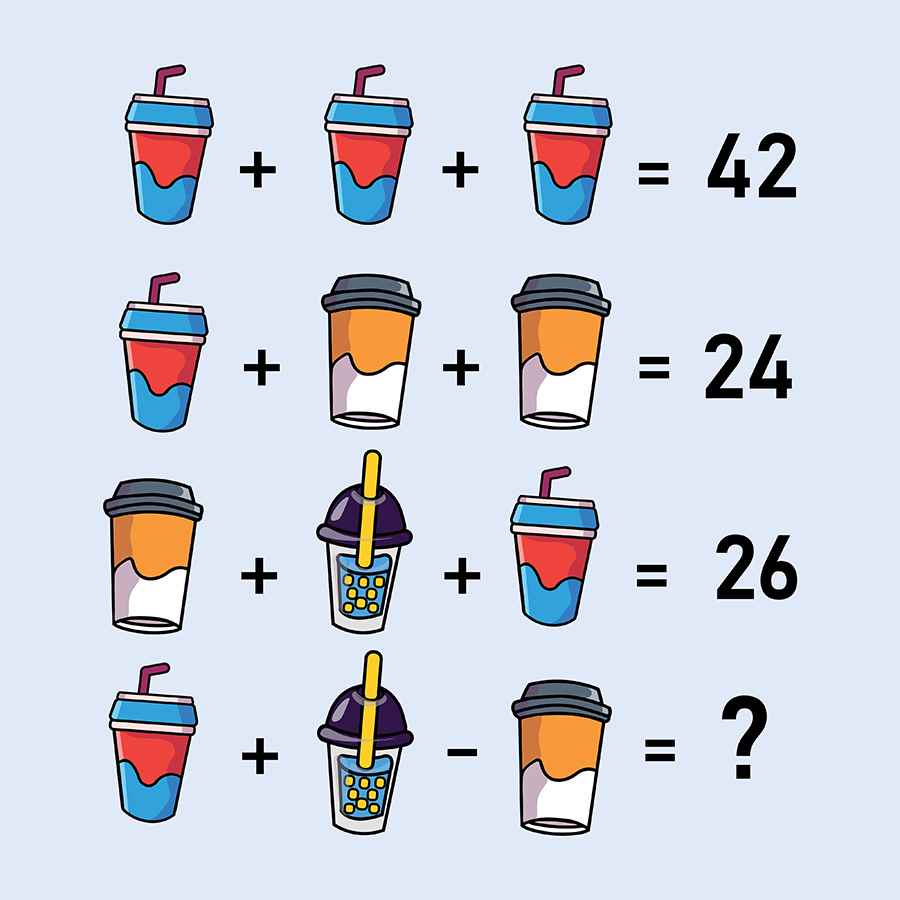 Coffee Cup + Soft Drink + Blue Can = 26