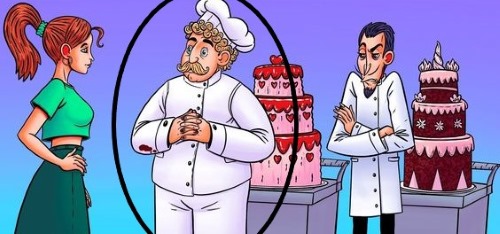 Brain Teaser With Answer: The first baker seems dangerous. Although the stain on his sleeve could be jam, a good cook always keeps their hands clean, suggesting that he might be dangerous.