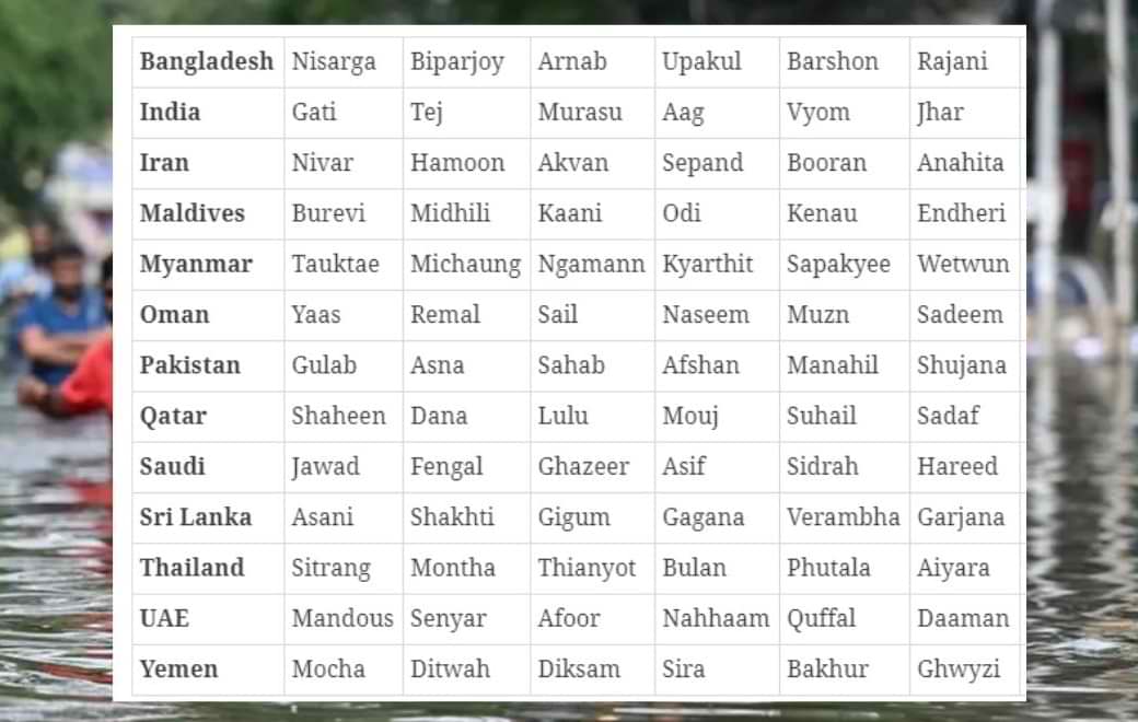 कैसे रखे जाते हैं चक्रवातों के नाम?