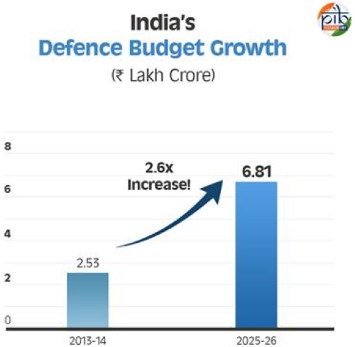 - Defence Budget Surge: Increased from ₹2.53 lakh crore in 2013-14 to ₹6.81 lakh crore in 2025-26.