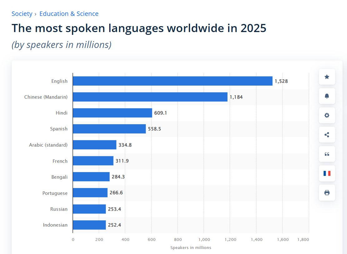 | 3️ | Hindi | 609 million | Widely spoken across India and parts of South Asia |