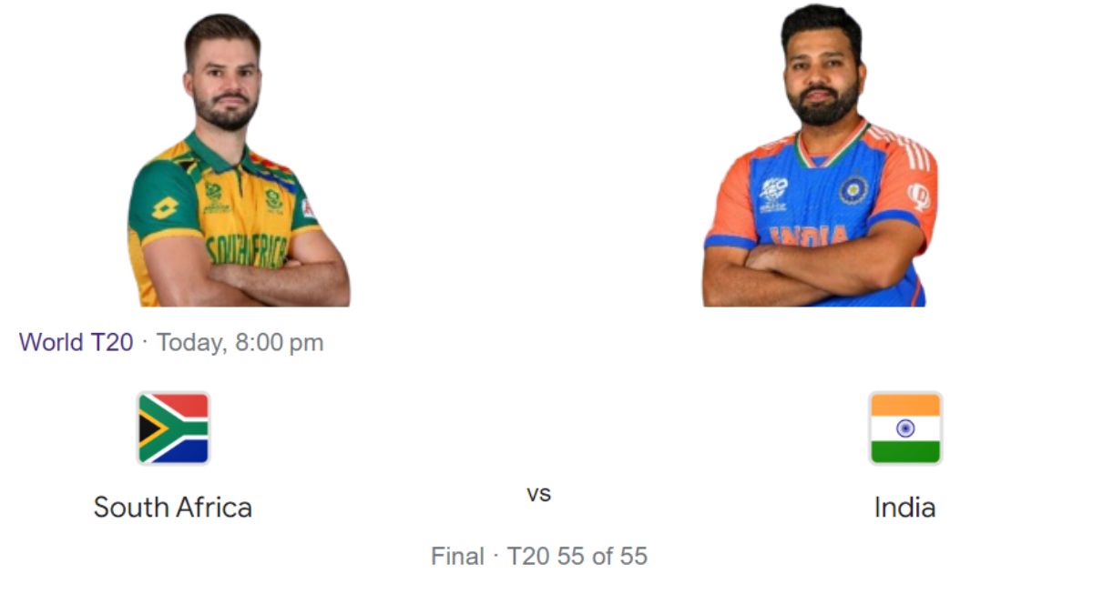 -Update 29 June 01: 27 PM (IST) T20 World Cup 2024 IND vs SA Final बारबाडोस से 8 बजे लाइव होगा मैच:9वें पुरुष T20 क्रिकेट विश्व कप का फाइनल भारतीय समयानुसार शाम 8 बजे से शुरू होगा, साथ ही आपको बता दें कि बारिश की स्थिति में रिज़र्व डे में मैच कल खेला जायेगा. -Update 29 June 12: 55 PM (IST) |