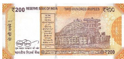 इस मूल्यवर्ग के नोट भारत में पहली बार छापे गए हैं। 200 रुपये के एक नोट की छपाई की कीमत करीब 2.93 रुपए है।इस नोट के अगले भाग में महात्मा गांधी की फोटो और अशोक स्तंभ है, जबकि नोट के पिछले हिस्से में प्रसिद्ध सांची स्तूप की फोटो है।