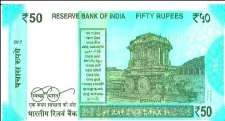50 रुपये के नोट की छपाई की कीमत करीब 1.81 रुपये है और 4000 करोड़ के नोट चलन में हैं। इस नोट के सामने के हिस्से में महात्मा गांधी की तस्वीर, अशोक प्रतीक और भारतीय संसद के डिजाइन को दिखाया गया है, जो भारत के मजबूत लोकतंत्र का दर्शाता है, जबकि नए नोट के पिछले हिस्से में 'स्वच्छ भारत' के लोगो और हम्पी (कर्नाटक) के रथ की छवि दिखाई गई है। . हम्पी भारत में एक विश्व धरोहर स्थल है।