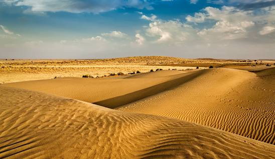 | थार रेगिस्तान (रेगिस्तानी जिले) | जैसलमेर, बाड़मेर, बीकानेर और जोधपुर (थार रेगिस्तान या ग्रेट भारतीय रेगिस्तान राजस्थान के कुल भूभाग का लगभग 70% हिस्सा है और इसलिए इसे "भारत के रेगिस्तानी राज्य" के रूप में पहचाना जाता है।) |
