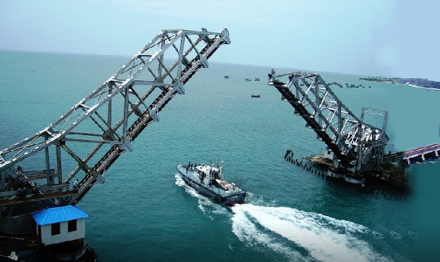 24 फरवरी 1914 को पंबन ब्रिज खोला गया था जो भारत का पहला समुद्री पुल था। यह पंबन द्वीप पर रामेश्वरम को मुख्यभूमि भारत से जोड़ने वाला एक रेलवे सेतु है। इसमें एक डबल-लीफ बेसक्यूल सेक्शन है, जिसे जहाजों और बार्ज को गुजरने देने के लिए उठाया जा सकता है।