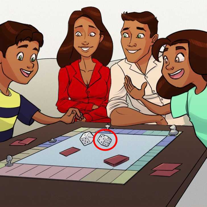 The mistake in the picture is that one of the faces of the dice has 10 dots.