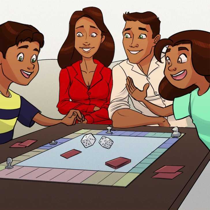 A group of four people can be seen playing a board game.