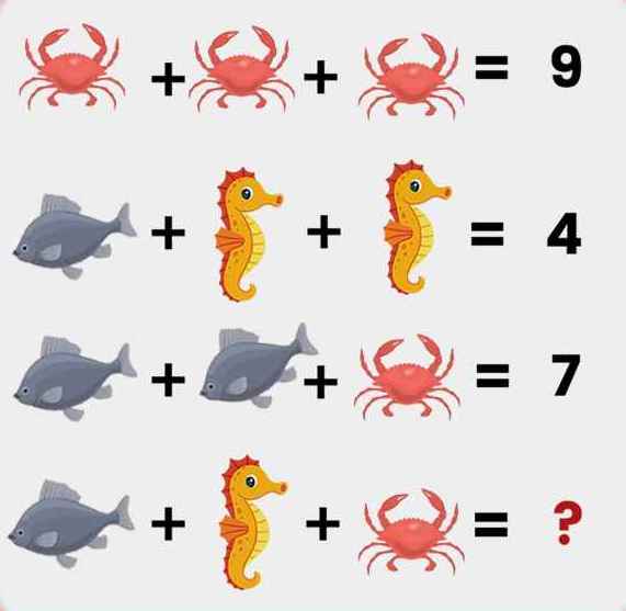In the image shared above, a math puzzle consisting of marine animals is presented before the readers.