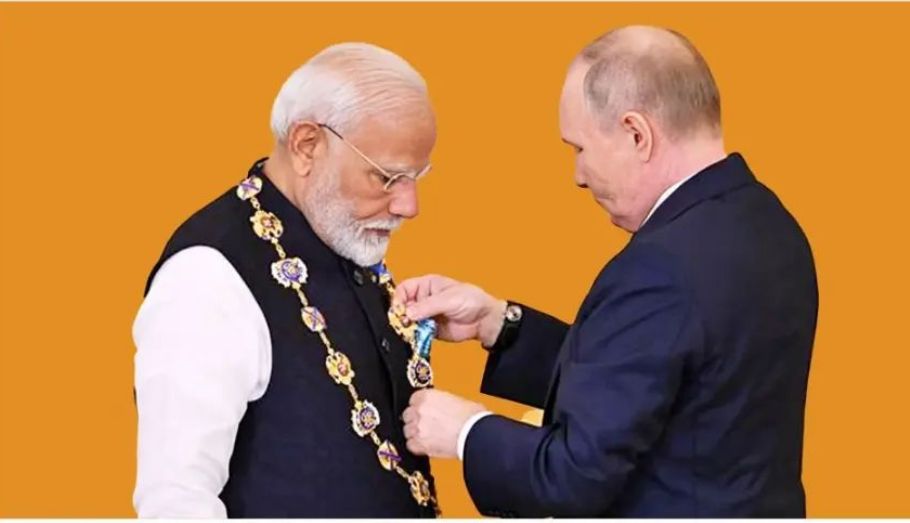 प्रधानमंत्री नरेंद्र मोदी को हाल ही में रूस के सर्वोच्च नागरिक सम्मान, 'ऑर्डर ऑफ सेंट एंड्रयू द अपोस्टल' (Order of St Andrew the Apostle) से सम्मानित किया गया. पीएम मोदी को यह सम्मान रूस के राष्ट्रपति व्लादिमीर पुतिन की ओर से राजधानी मास्को में आयोजित एक सम्मान समारोह दिया गया. पीएम मोदी को यह सम्मान ऐसे समय पर दिया गया है जब पूरी दुनिया खासकर पश्चिमी देशों की नजरें पीएम मोदी के दौरे पर थी.