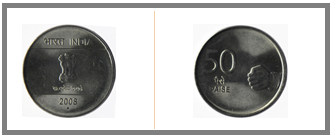 | 50 पैसे | फेरिटिक स्टेनलेस स्टील (Ferritic Stainless Steel) 3.79 ग्राम सर्कुलर 19 मिमी |