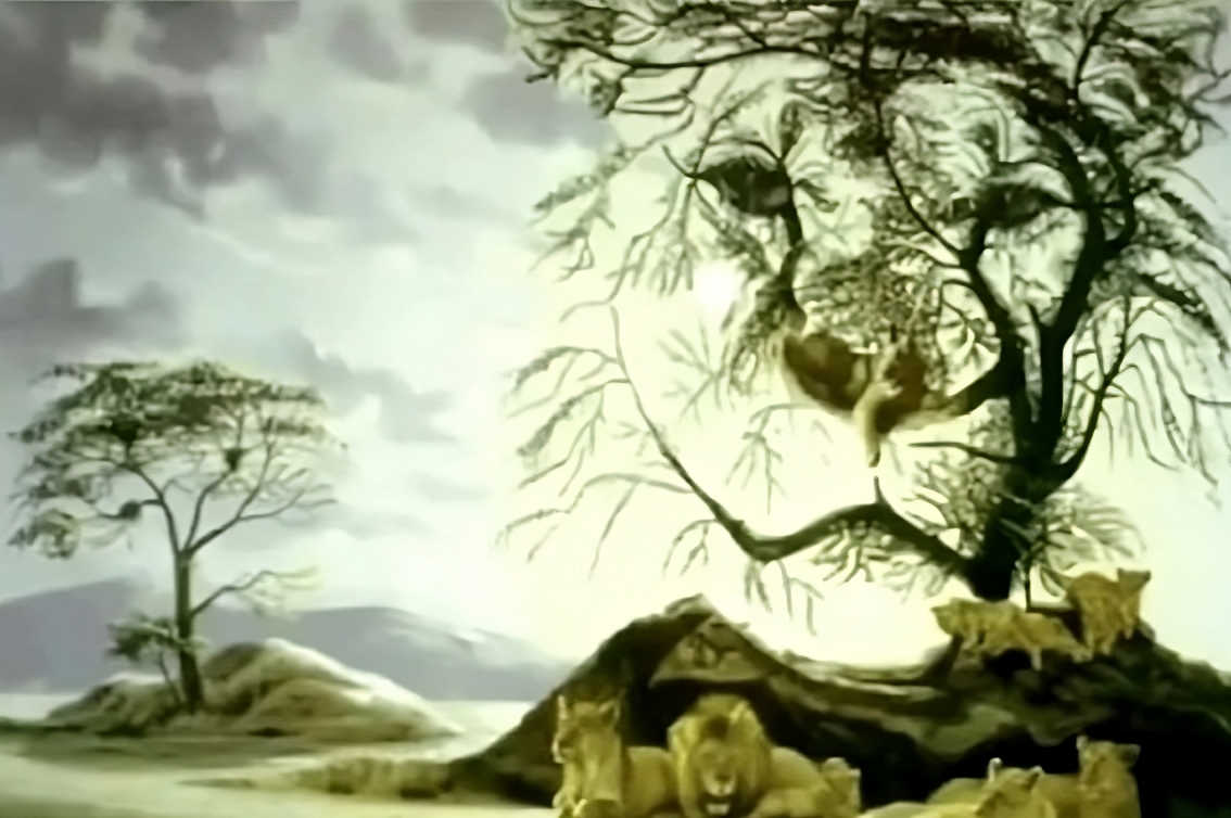 Some people will see the lions and the tree first, while some keen observers will notice the outline of the face of a lion formed in the tree.