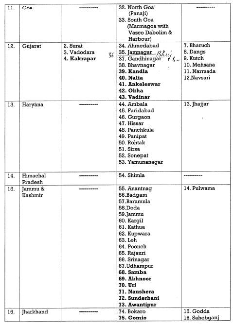 List of All 244 Locations for the Mock Drill