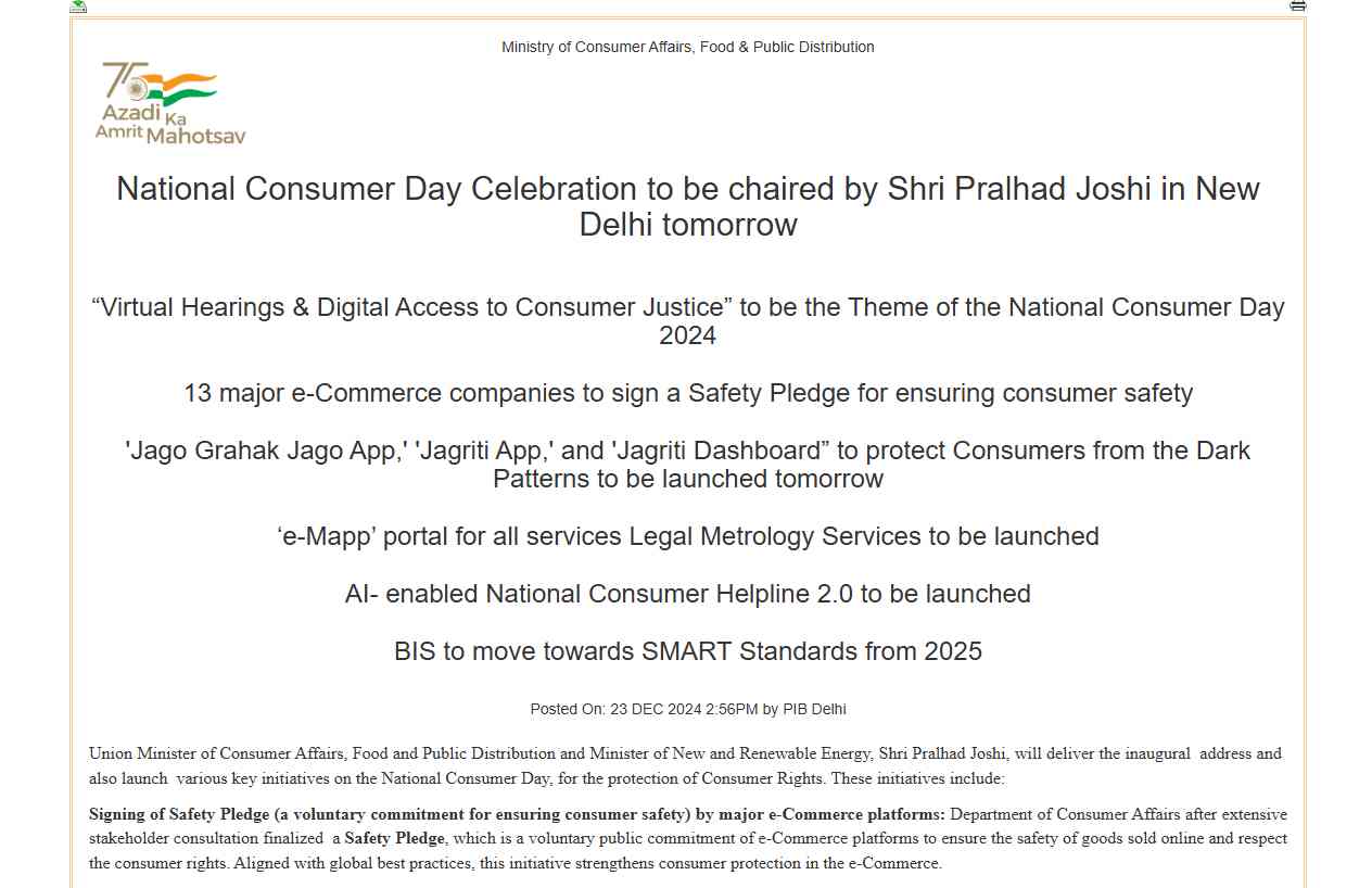The theme for National Consumer Day 2024, celebrated on December 24, is “Virtual Hearings & Digital Access to Consumer Justice.”