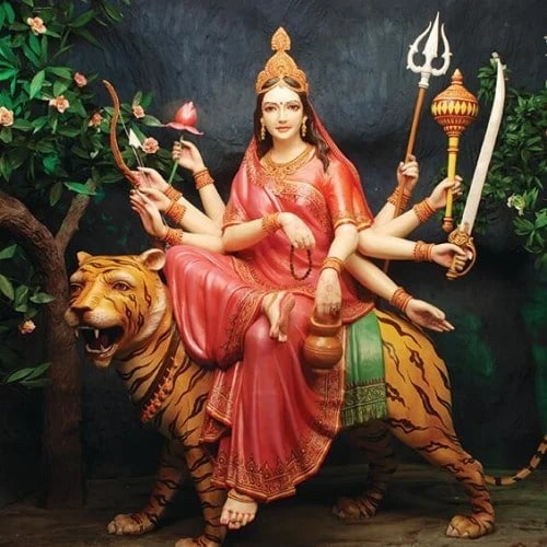 This form of goddess Durga is also known as Asthabhuja Devi and she is also known as Adi Shakti who is credited with the creation of the universe.