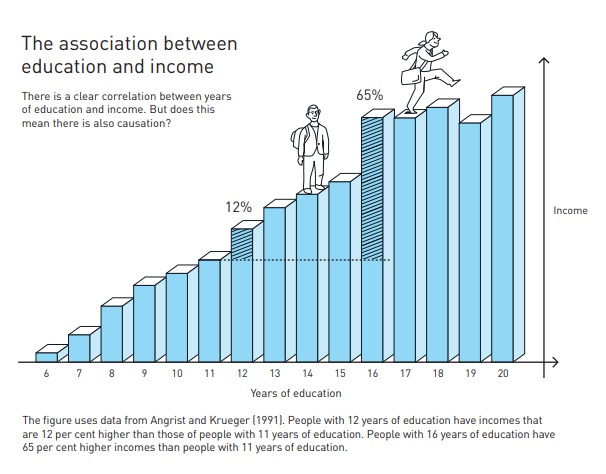 The two laureates drew conclusions about the effect of an extra year in school through natural experiments. They concluded that extending compulsory education by a year for one group of students (but not another) will not affect everyone in that group in the same way as some students might have kept studying anyway and, for them, the value of education is often not representative of the entire group.