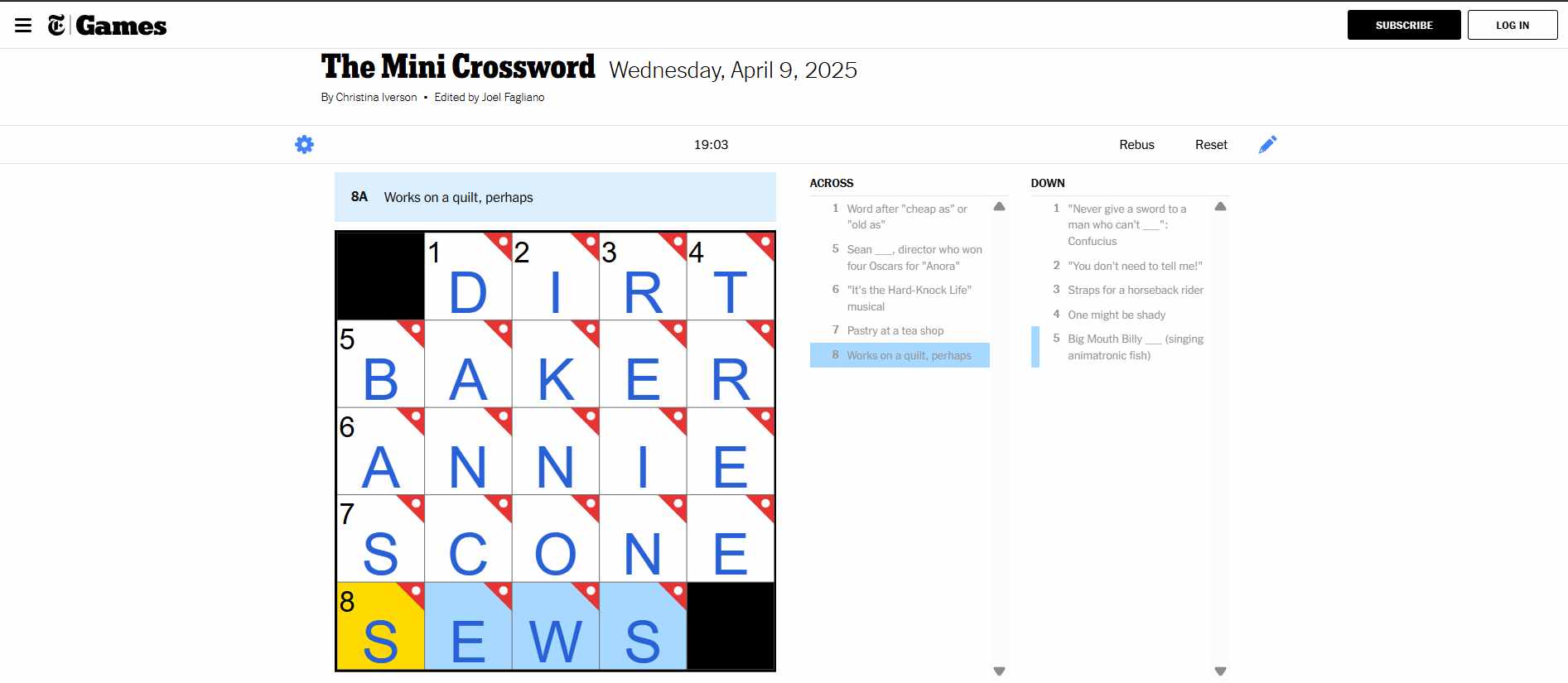 Looking for help with today’s NYT Mini Crossword? Here are the hints, clues, and answers for April 9, 2025. Use them to solve the puzzle or check your solutions easily.