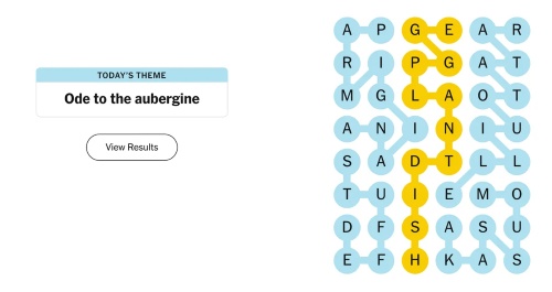 The theme for the NYT Strands puzzle on Friday, March 21, 2025, is "Ode to the Aubergine," focusing on dishes featuring eggplant.