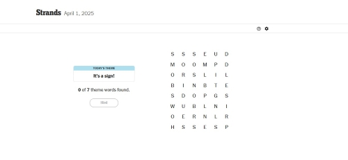 The NYT Strands puzzle for April 1, 2025, is themed "It's a Sign!" This theme revolves around indicators of the arrival of spring.