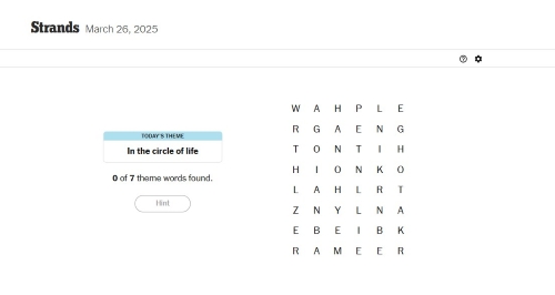 The theme for today's NYT Strands puzzle, dated March 26, 2025, is "In the Circle of Life." This theme revolves around the famous song from The Lion King, symbolizing the natural cycle of life, growth, and renewal.
