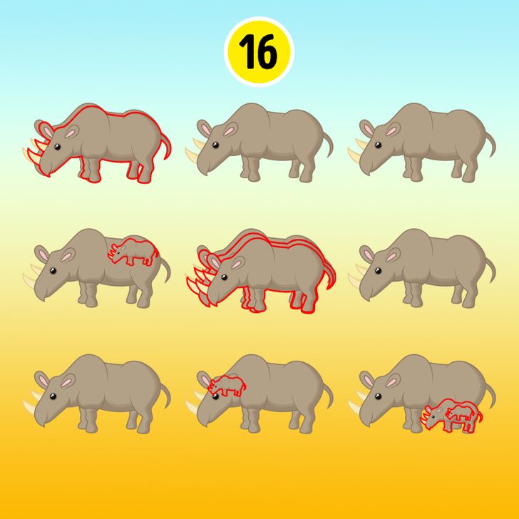 So, the answer to this mental quiz is that there is total 16 rhinos in the picture.