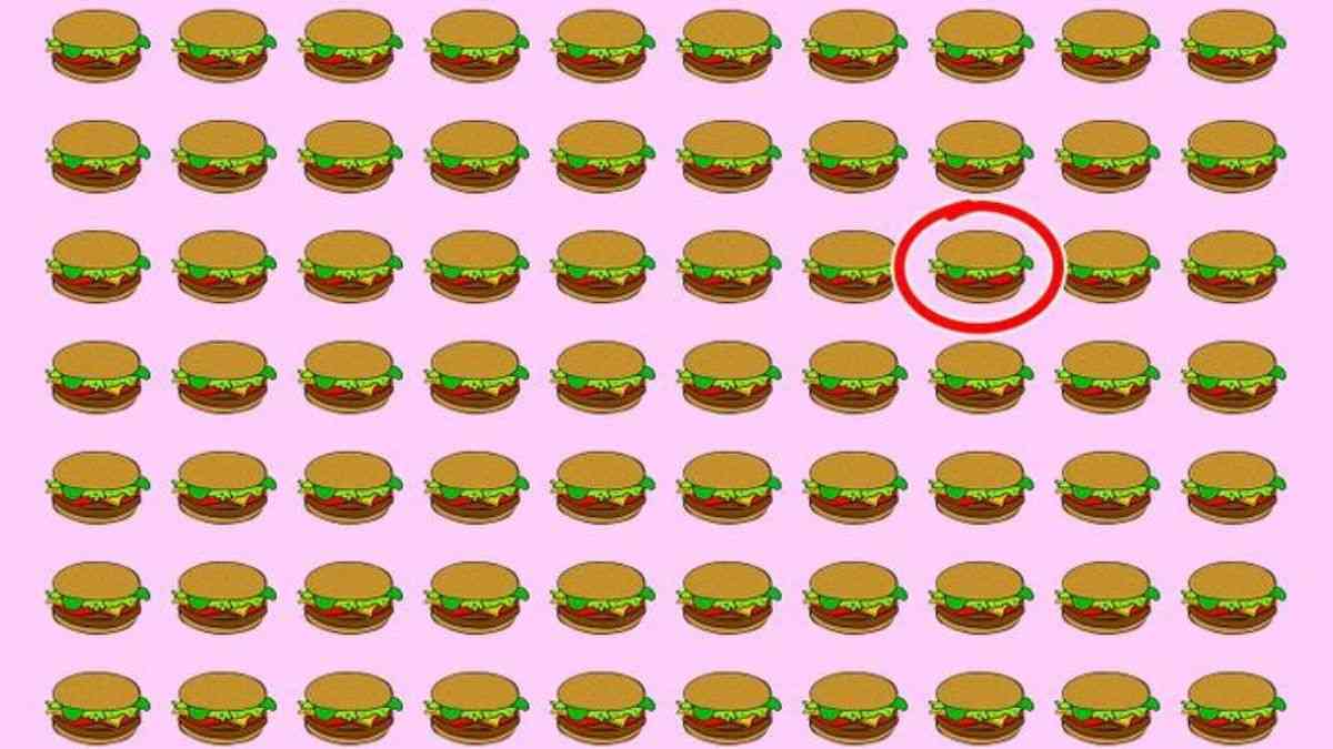 The picture is from the quiz section of Brightside. However, Brightside further credits Pixabay for these scrumptious burgers. A total of 70 burgers are aligned in rows and columns, and your task is to find the odd one.