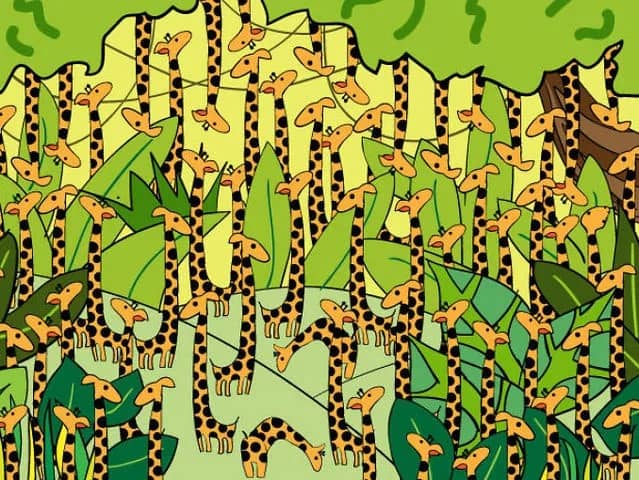 The snake is hiding cleverly among the giraffes, and you have 10 seconds to find it.