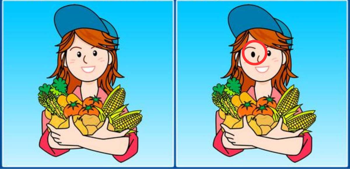 The image above depicts two identical pictures where you can see a girl carrying groceries in her arms. Although the two images are nearly identical, there is one difference between the two. Can you find it in 3 seconds?