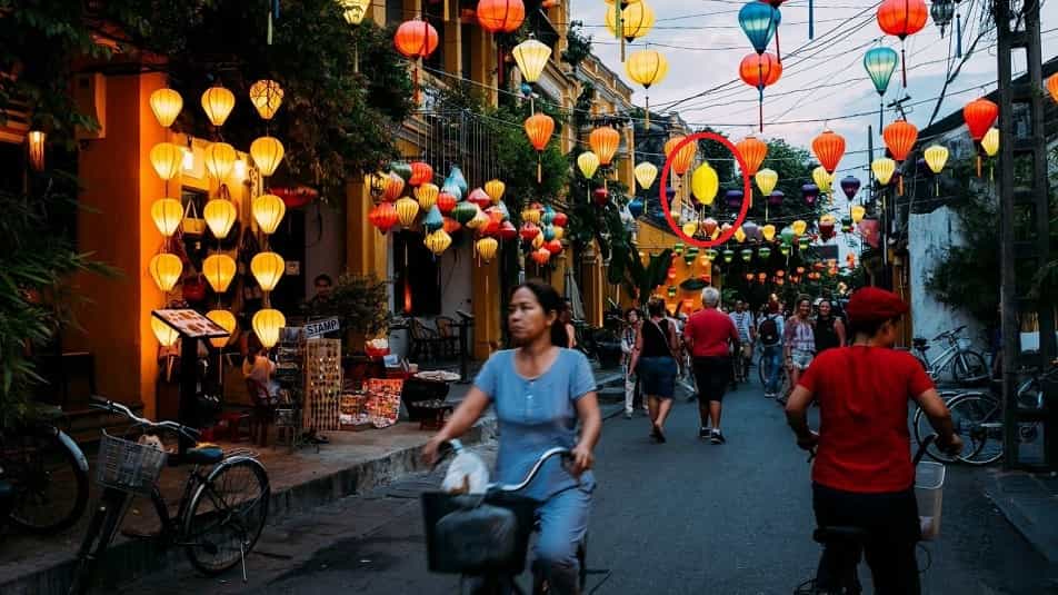 The image shared above shows a busy street scene that is filled with various coloured lamps.