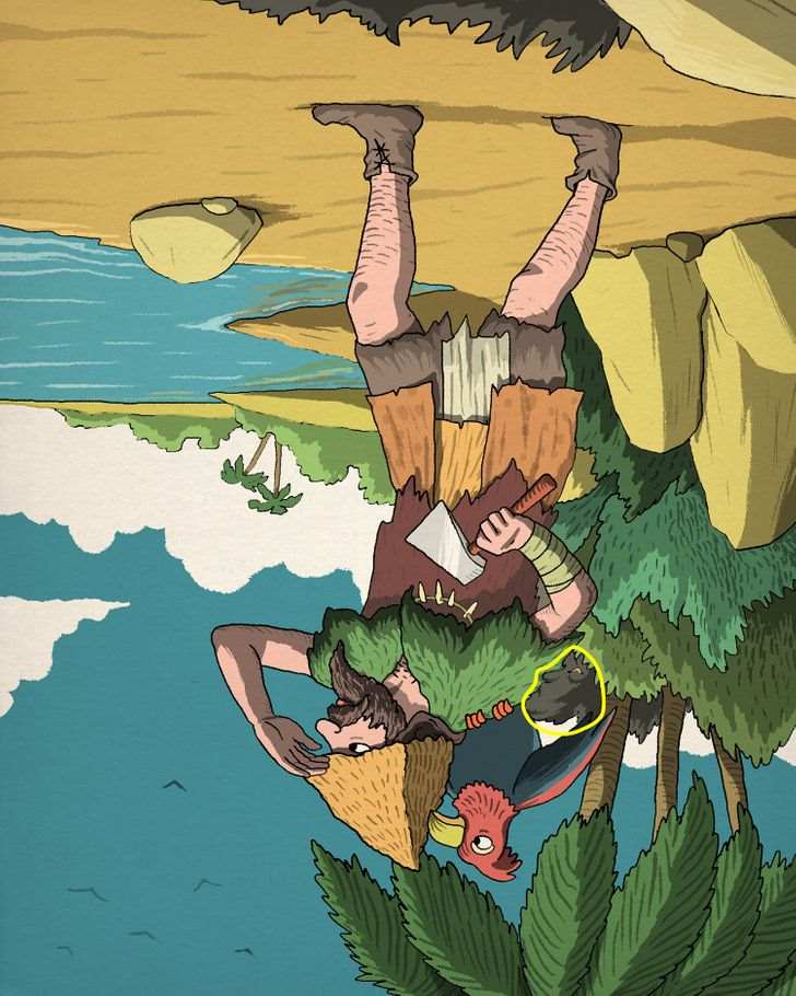 The above image was shared as a puzzle for both children as well as adults. The illusion challenges the viewers to find the hidden face inside the picture of the caveman. In this optical illusion, you can see a caveman standing near the sea. On his shoulder, a bird is sitting and the caveman is looking for his friend near the seashore. The puzzle challenges the viewers to find the hidden face by asking “Where’s the man Robinson used to call Friday hiding?”.