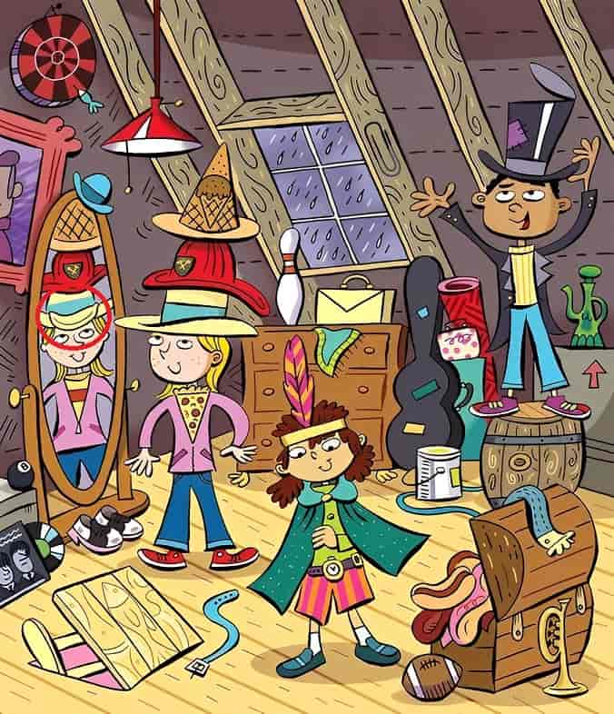 The image shows a room scene in which three children can be seen trying out different costumes.