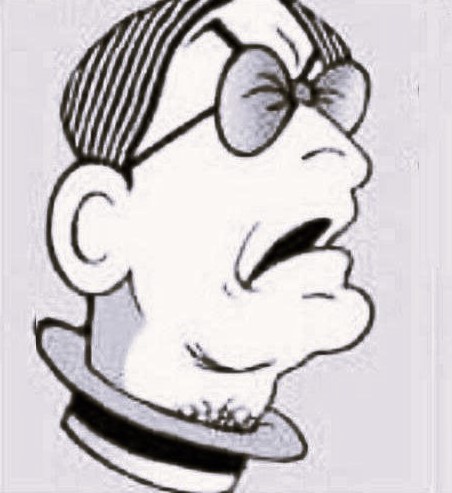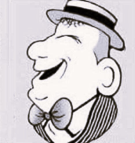 This image shows a middle-aged man laughing but the challenge is to find an angry young man.