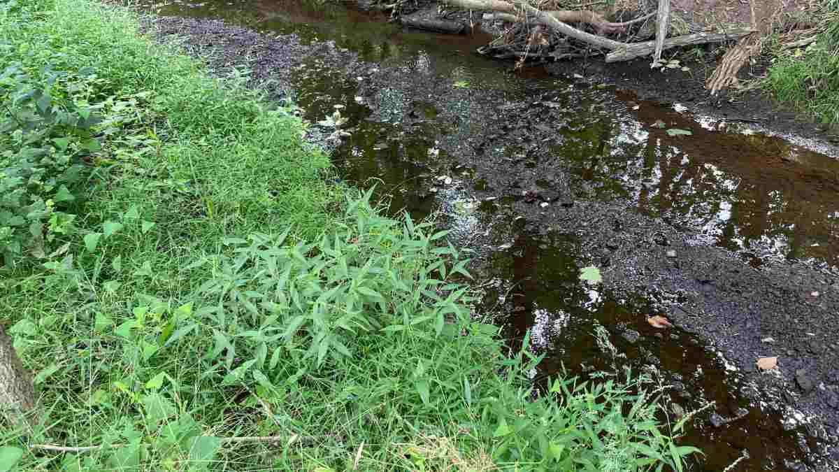 This image shared on Reddit shows a forest scene in which you can see a broken tree with its branches, and a body of water which has dried up.
