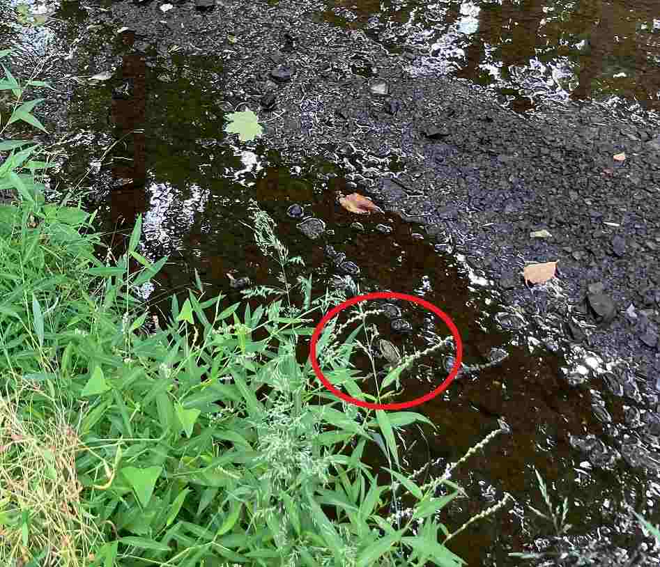 The frog can be seen on the extreme right side of the image which is circled in red.