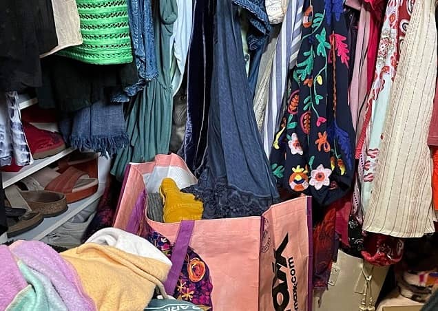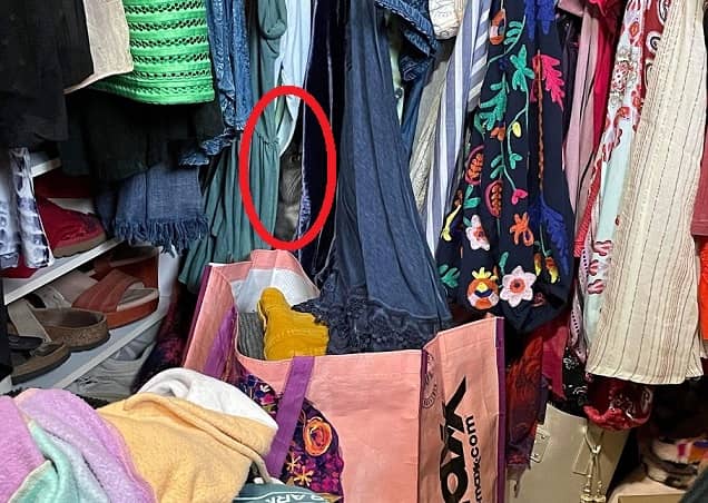 The image shared above shows a wardrobe scene in which clothes and various types of footwear can be seen.