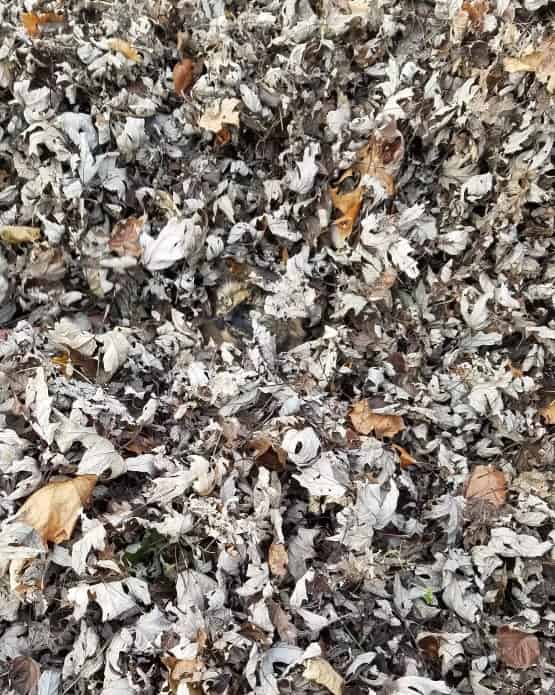 The image shared above shows an outdoor scene in which you can see leaves that have fallen from a maple tree.