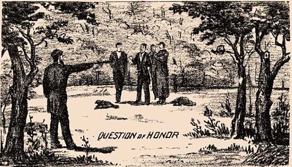 The first American duel took place in 1621 between Edward Doty and Edward Lester, of the Massachusetts colony.