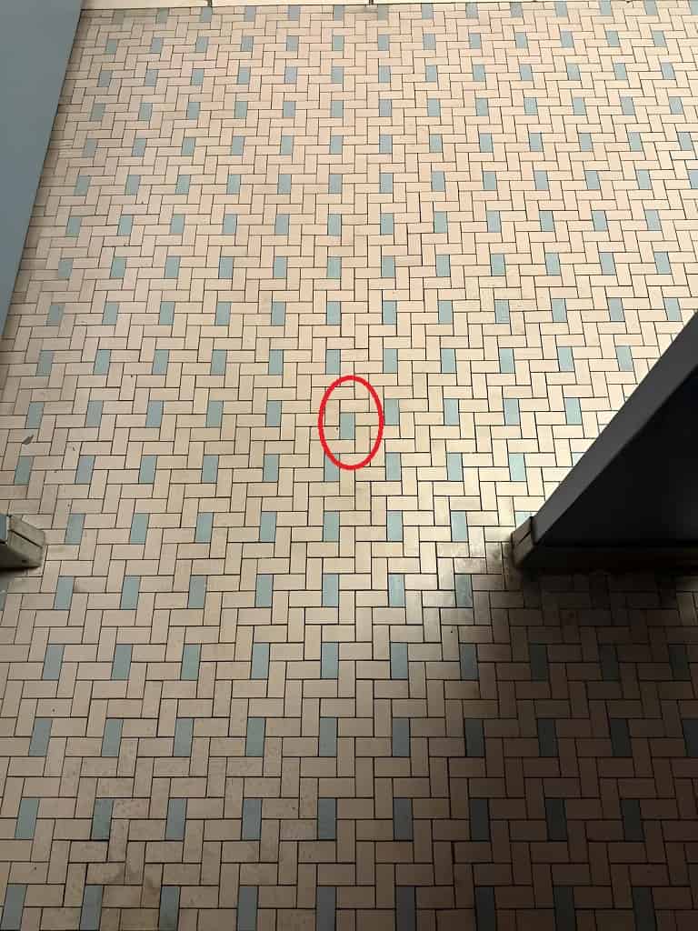This image shared on Reddit depicts a room scene where strips of beige and sky-blue coloured patterns on the floor can be seen.
