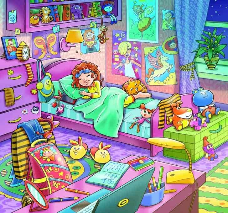 The solution is provided below in case some of you were unable to determine where the hidden bee was in the bedroom.