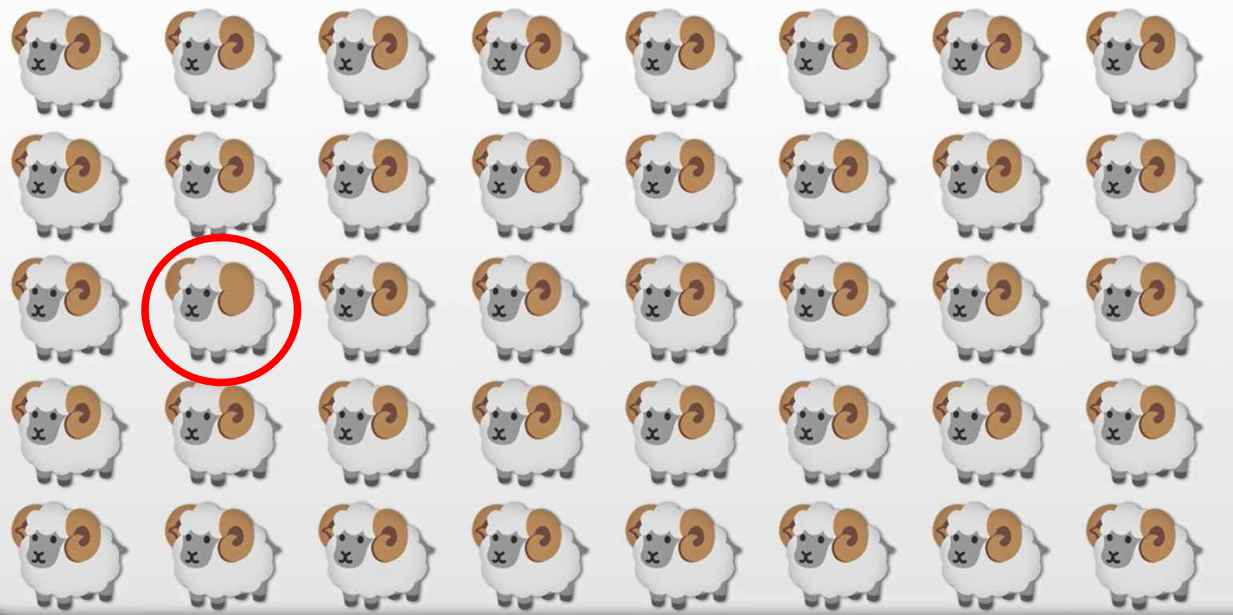 This is a simple test of your observation skills, and the faster you spot the different sheep, the more attentive you are.