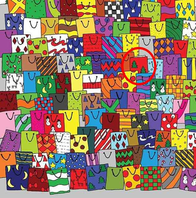 Optical Illusion Eye Test: Find Greeting Card among Gift Bags in 7 Seconds